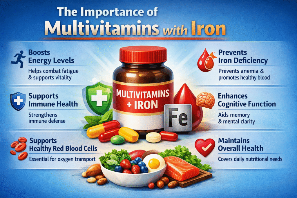 - Multivitamins with iron help prevent anemia, boost energy, and support immunity
