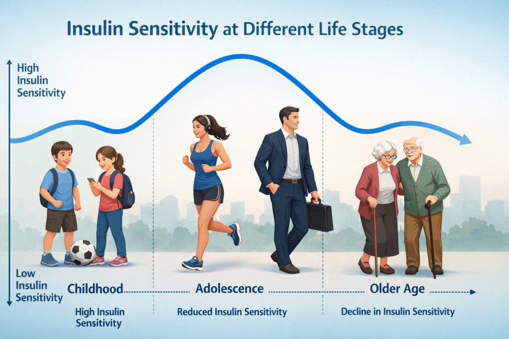 Insulin sensitivity naturally declines with age, making lifestyle habits increasingly important [30].